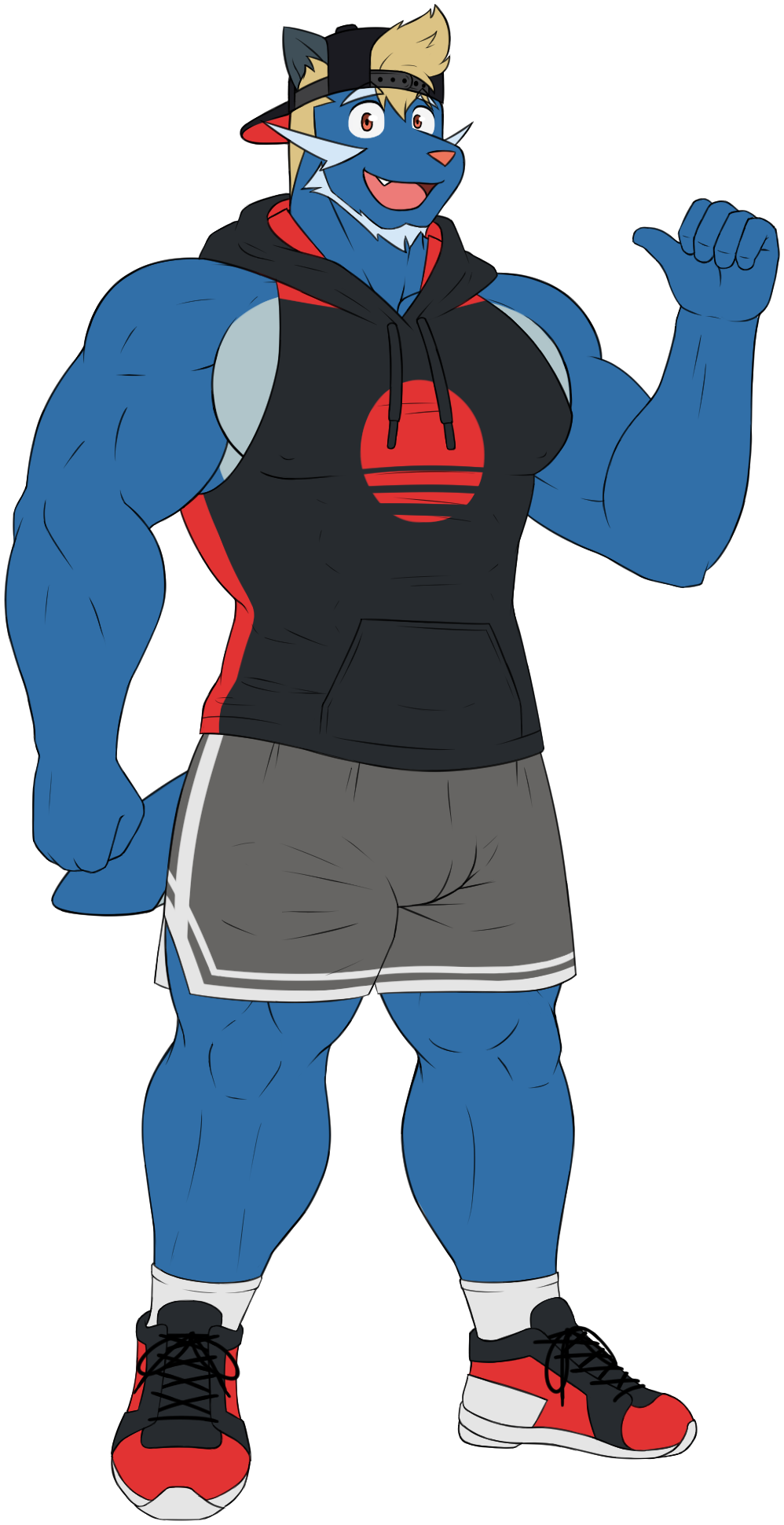 Your run-of-the-mill himbo college gymbro and dudebro, whose heart is just as big as his build. He's the life of the party, known for his exuberant and energetic nature—this makes him quite the popular guy, especially amongst other guys. And much like the stereotypical jock, he has a strong sense of pride, love and passion for sports (especially basketball) and fitness, so be prepared to hear him yap about stuff like his weightlifting progress or any sports-related media!Despite his strong and imposing physique, it becomes a shock to many people when they realize he's actually a really big softie! He's incredibly authentic to his own emotions, as he is prone to easily crying like a big baby or blushing profusely (especially when complimented or praised). And depending on the situation, he can also be pretty shy at times, not to mention he is very conflict-averse, as he's the last person to throw punches or lay a hand on anyone. Should he get involved in any sort of confrontation whatsoever, he gets extremely timid and nervous, and can even shut down on the spot, contrasting his otherwise lively demeanor.He also has a tendency to be very impulsive and quite the airhead as well—not only does he have somewhat of a bad habit of inadvertently talking and making things about himself, he can be very forgetful quite often. So if you catch him zoning out, chances are he's probably just trying to remember if he already hit his daily protein and creatine goals. But don't let his usual dim-wittedness completely fool you! He's surprisingly decently knowledgeable in kinesiology, sports and nutrition. On top of that, you can count on him to take responsibility in a household like a man, be it with cooking or cleaning. And despite his mediocre-at-best performance in academics, he's just trying his best at the end of the day, and is nonetheless a valued member of the varsity basketball team.